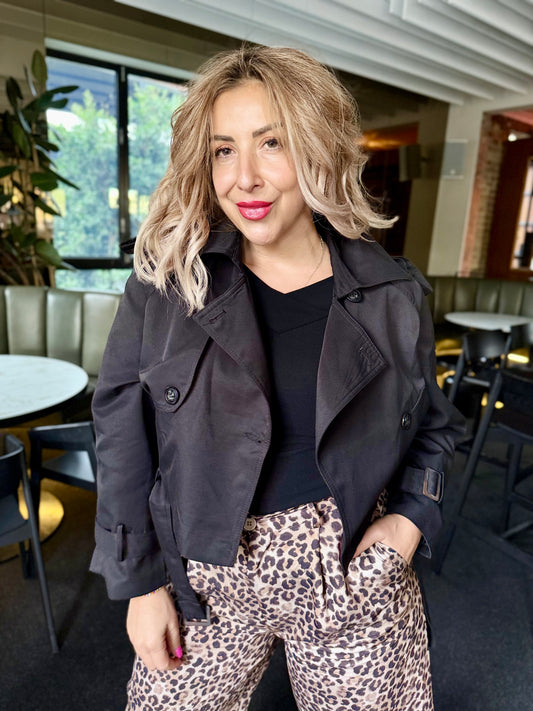 SLOANE - BLACK crop trench coat