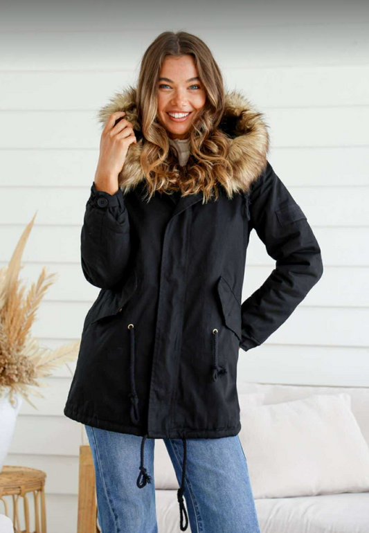 EMILY - BLACK anorak jacket with fur hood