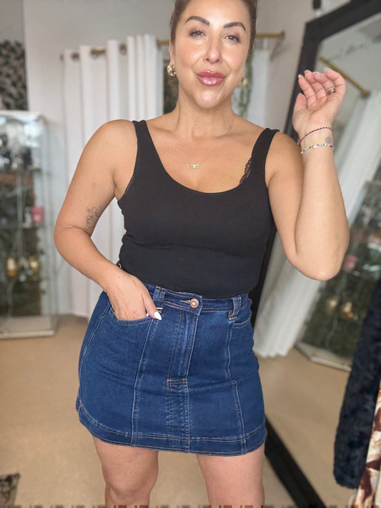TARA - LIGHT BLUE high waisted stretch mini skirt