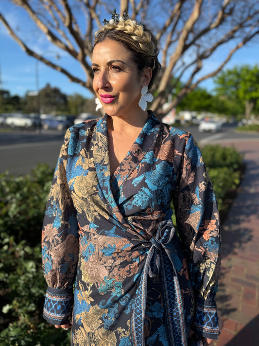 CRYSTAL - NAVY / CREAM floral window design scarf