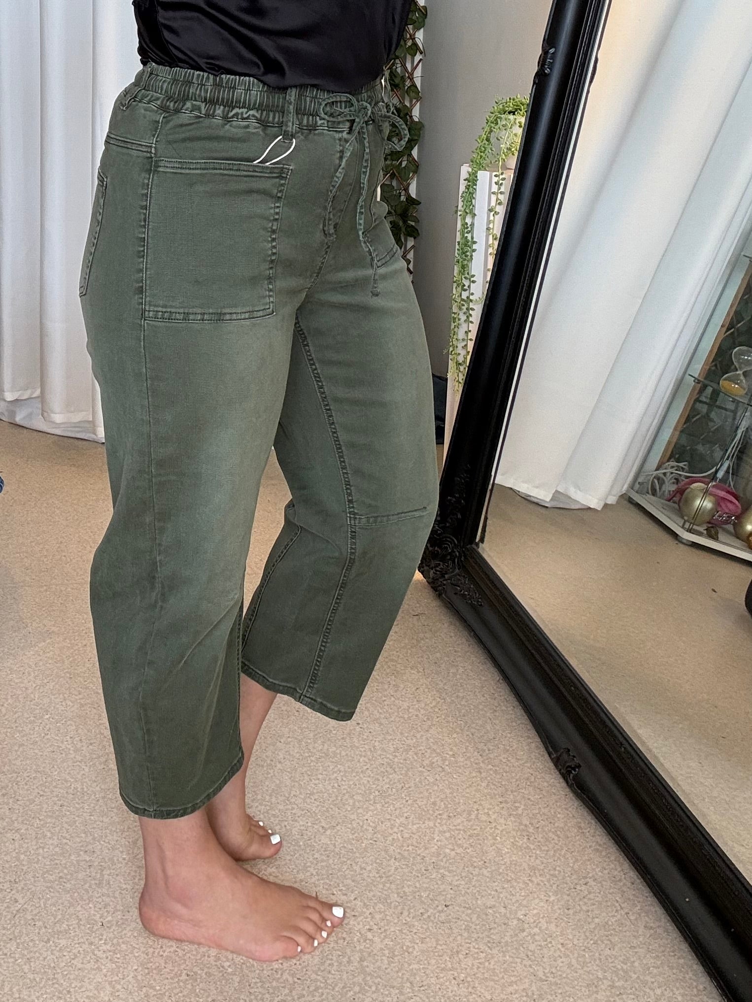 BARREL BABES (PRE ORDER MID NOVEMBER) - KHAKI cropped denim jean