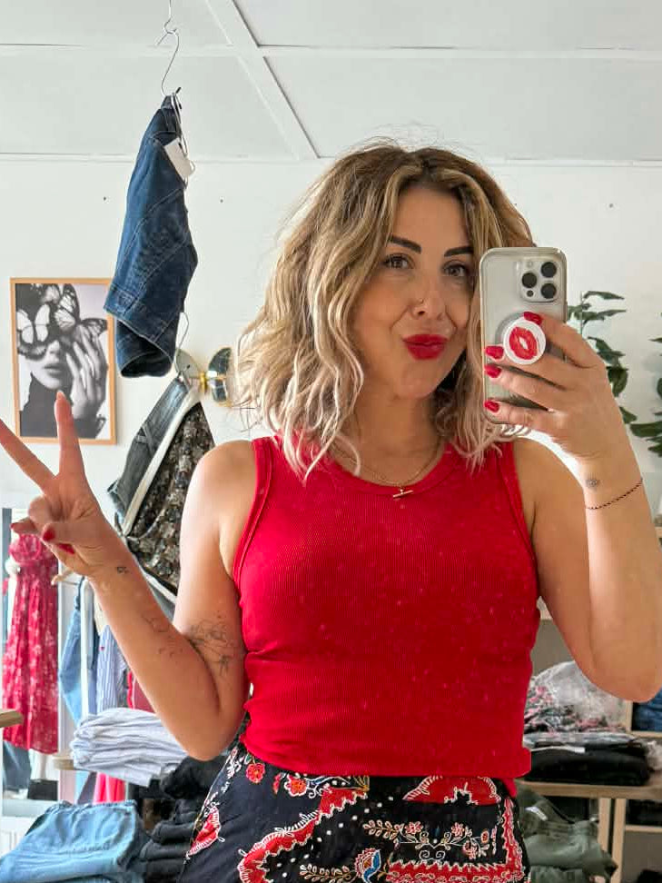 The ISLA tank in rich red is your wardrobe's new essential. Crafted with a flattering ribbed texture, this versatile piece layers effortlessly under jackets or stands alone as a statement basic. The timeless silhouette works season after season, making it an investment piece that earns its place in every outfit rotation. Comfortable, flattering, and endlessly styleable—this is the perfect basic you'll reach for again and again.